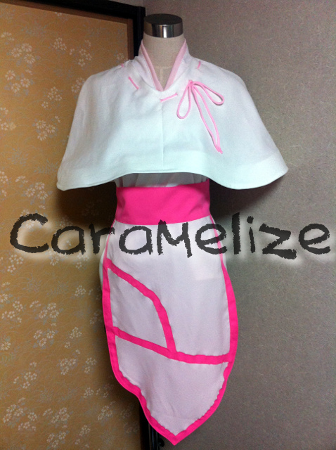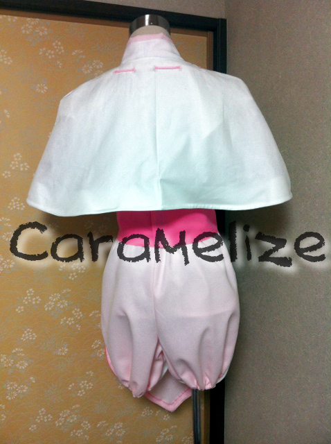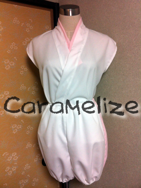 セット内容→着物型トップス、ショートパンツ、ケープ、前垂れ付帯